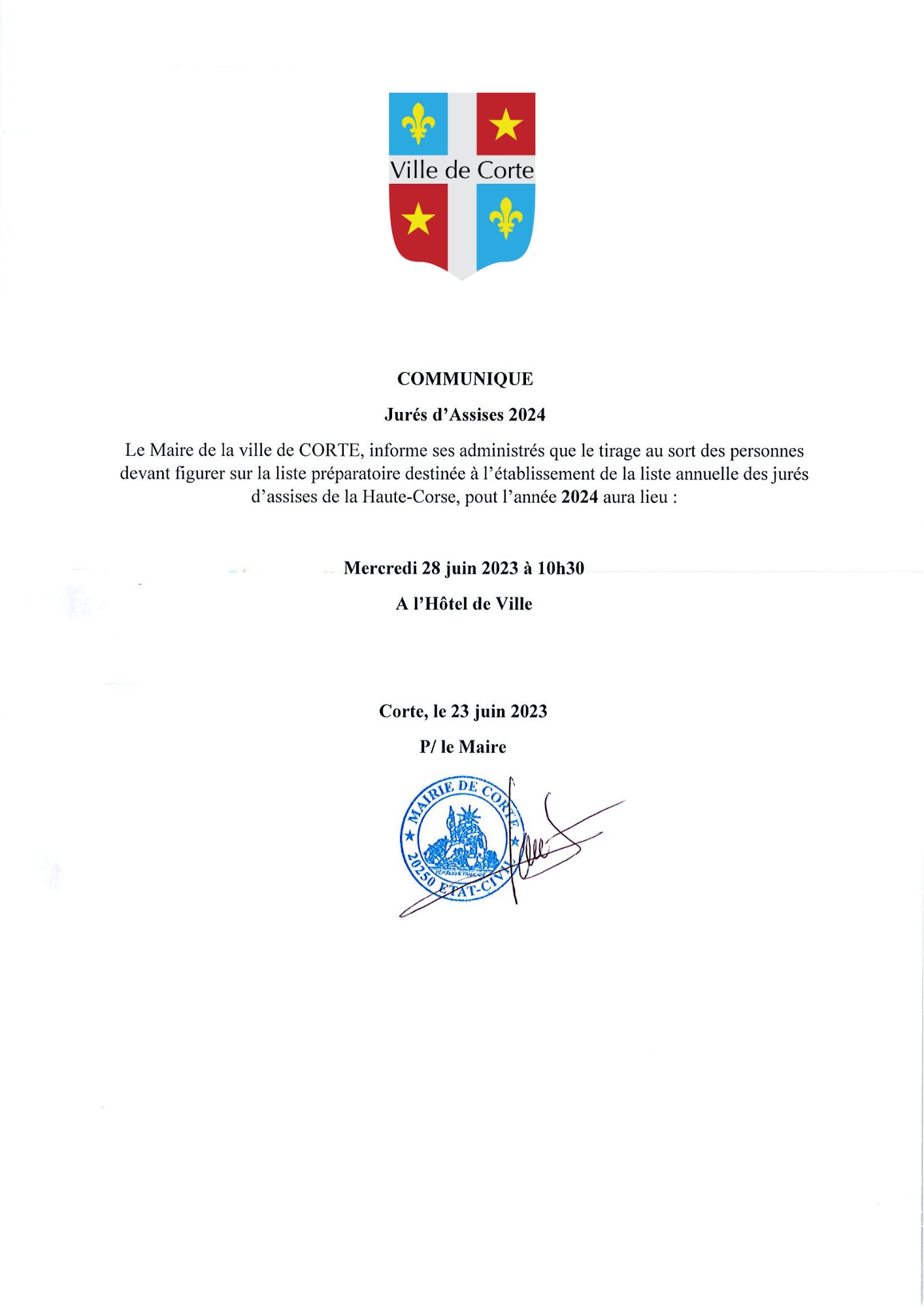Communiqué : Jurés d'Assises 2024