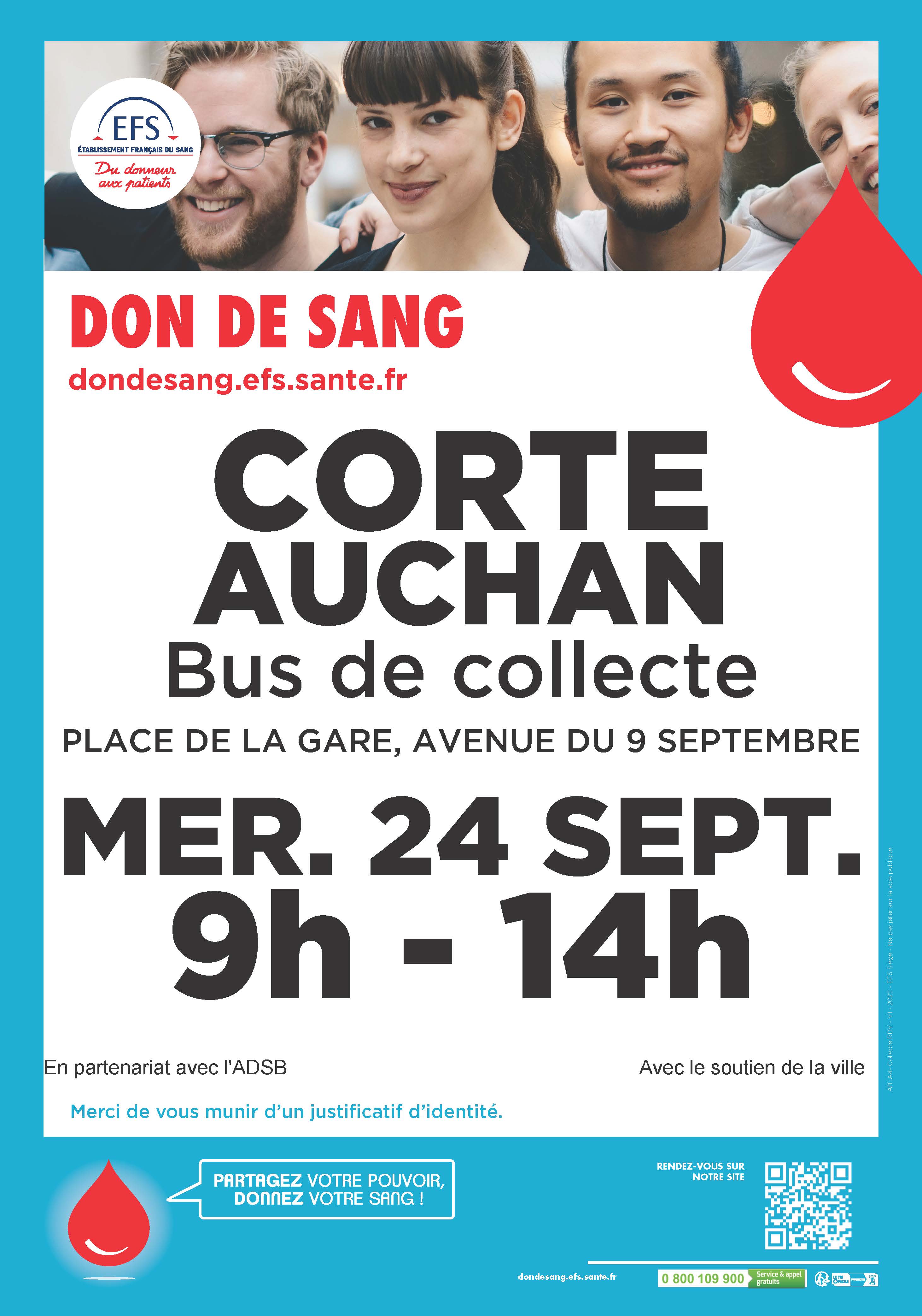 L’EFS organise une collecte de sang le mercredi 24 septembre 2025 de 09h à 14h à CORTE, Bus Parking Auchan.