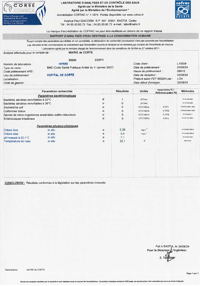 La régie de l'eau informe ses abonnés que les résultats des dernières analyses, reçues ce jour, sont conformes à la législation.