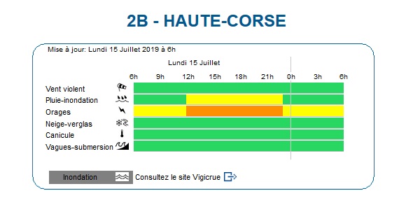 Fin de phénomène prévue le lundi 15 juillet 2019 à 23h00