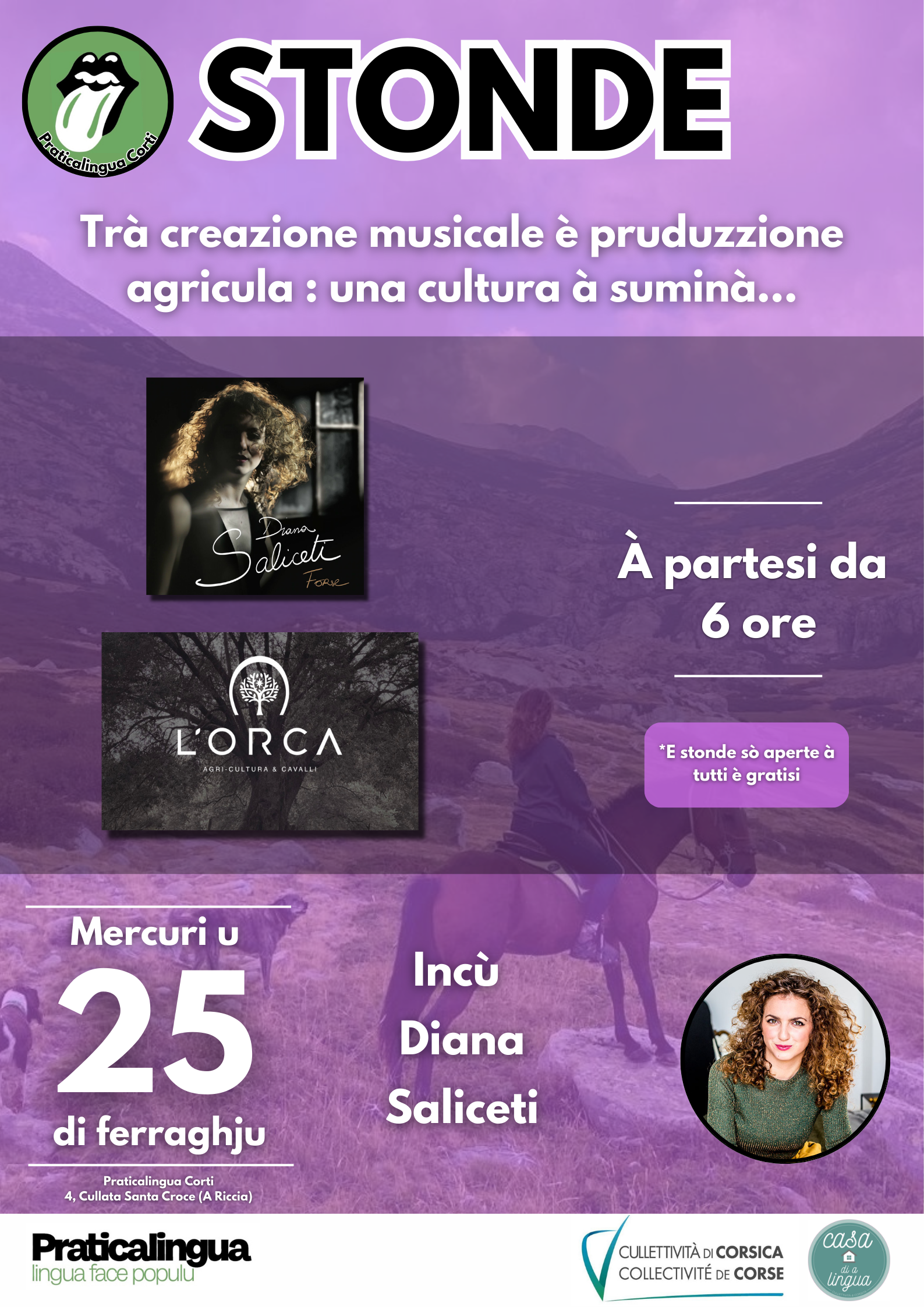 Pratica Lingua : Stonde " Trà creazione musicale è pruduzzione agricula : una cultura à suminà..." incù Diana Saliceti