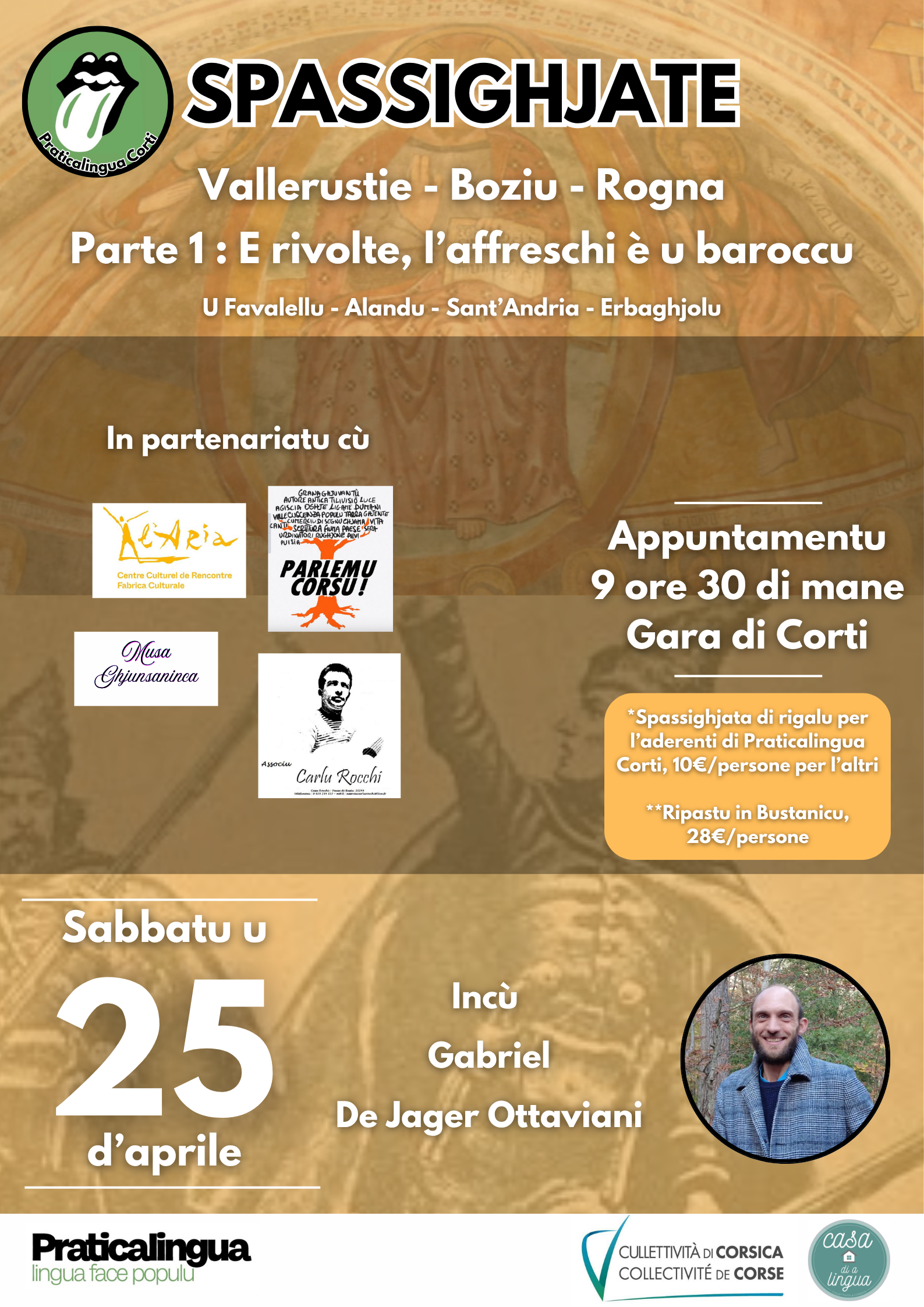 Cum’è sempre, a spassighjata hè di rigalu per l’aderenti di Praticalingua Corti (si tratta di 10€/persone per l’altri). Un ripastu hè previstu in Bustanicu à meziornu, è si tratta tandu di 28€/persone per tutti.