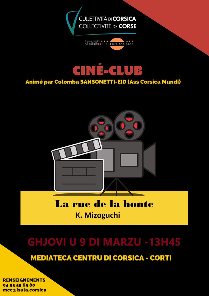 La Médiathèque Centre Corse vous propose dans le cadre du Ciné-Club, la projection du film de K. Mizoguchi, La rue de la honte